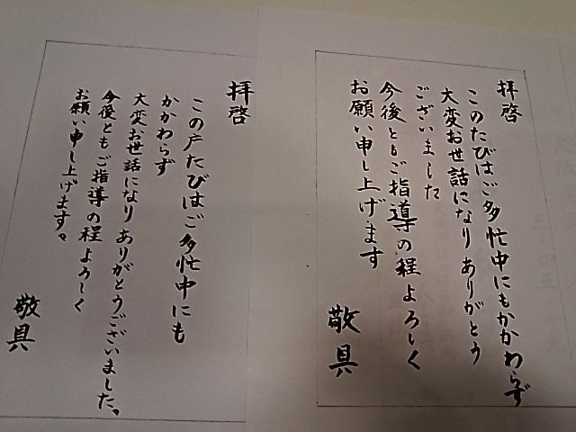 こちらは、3ヵ月学んだあとの左の方が、しっかりとした文字で書かれています。